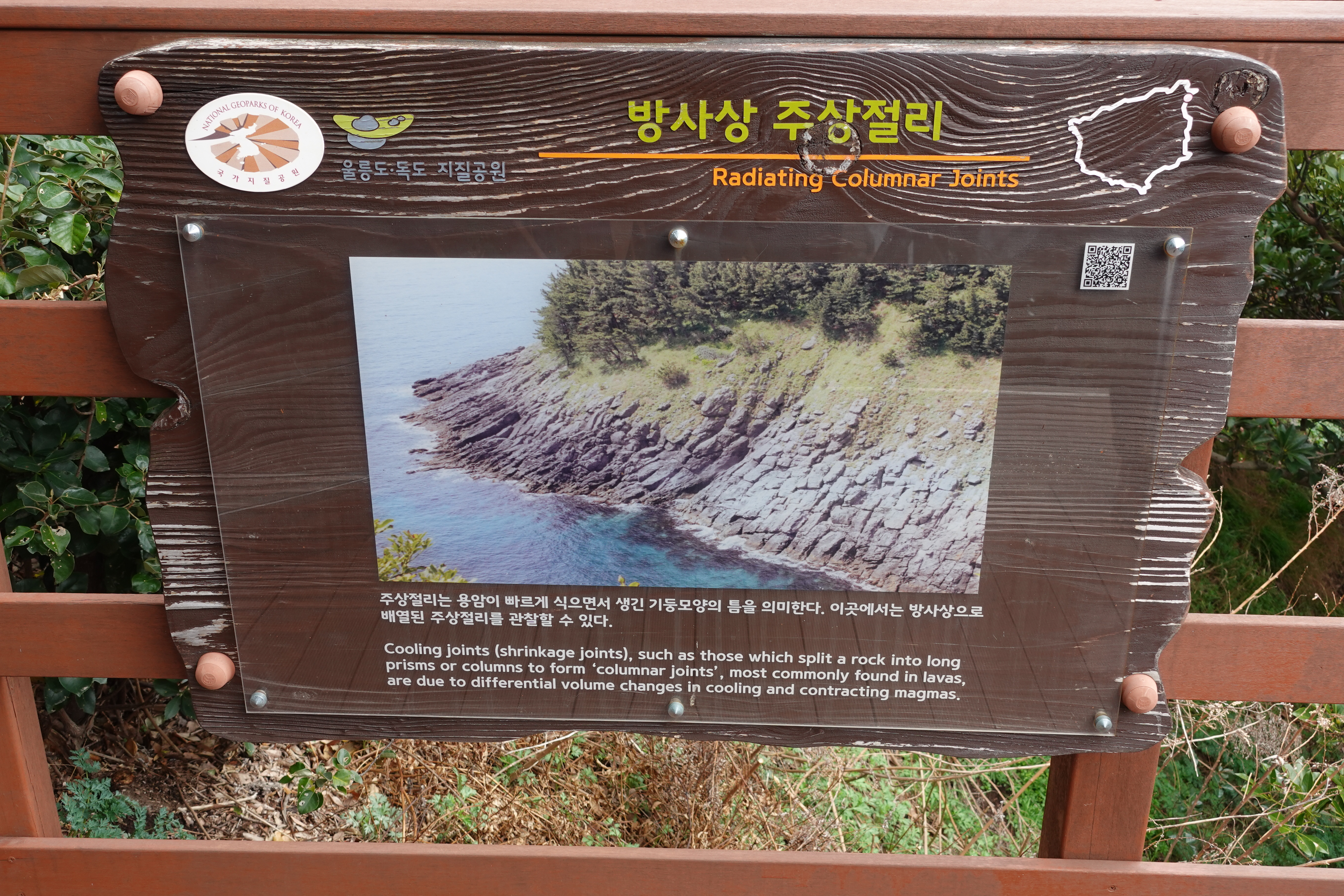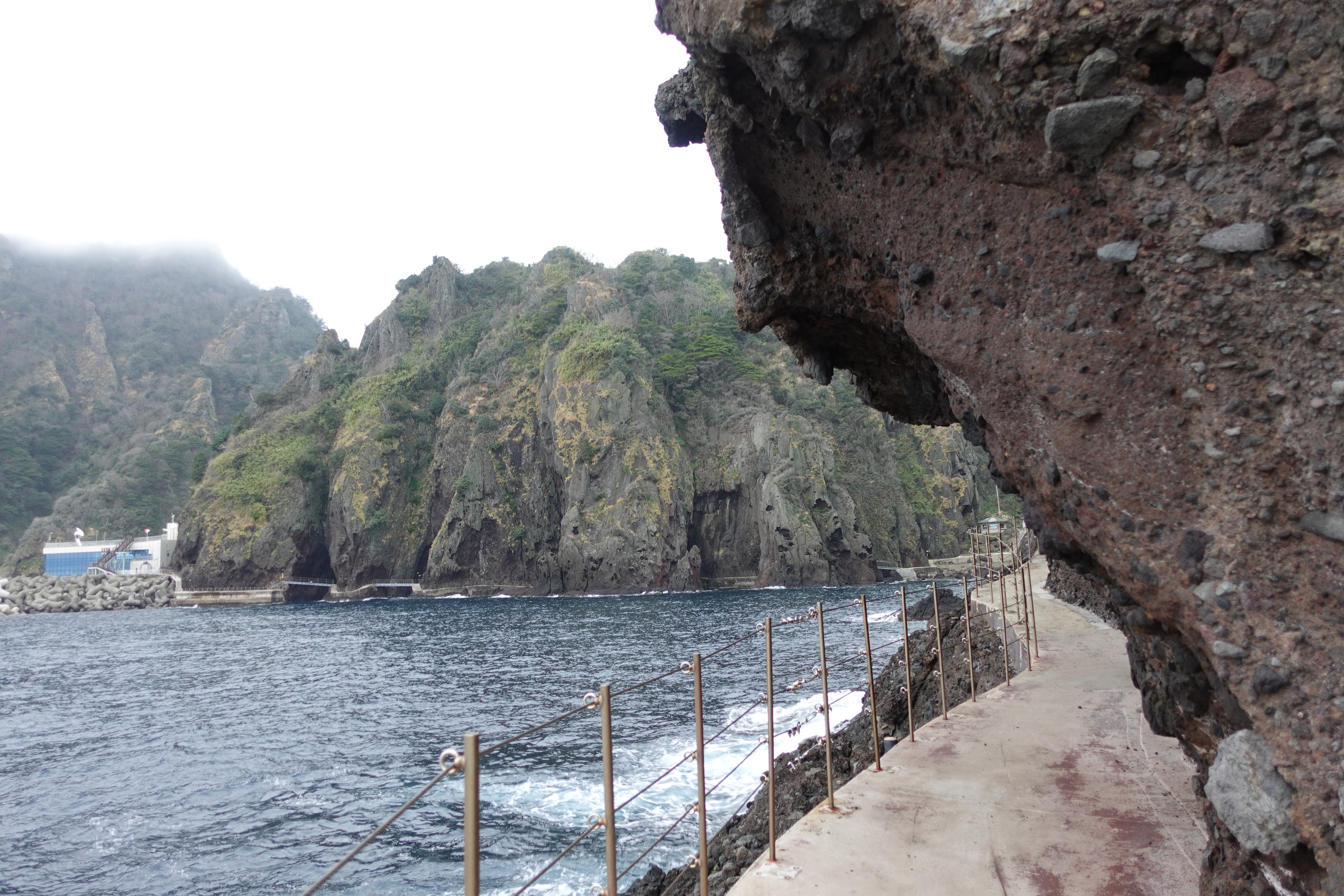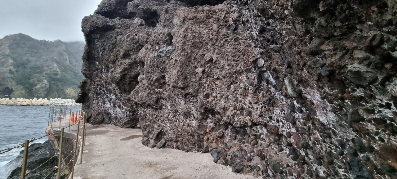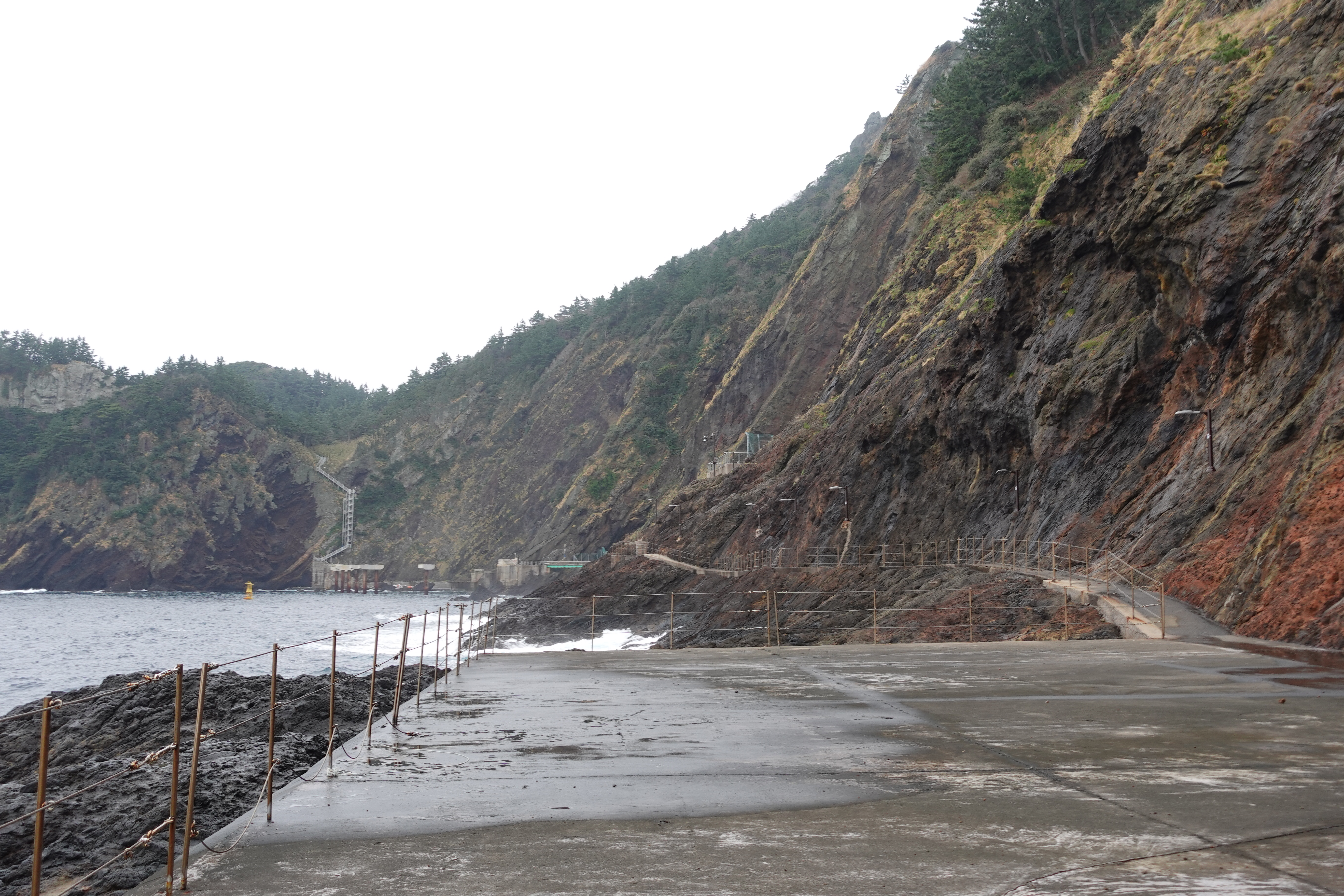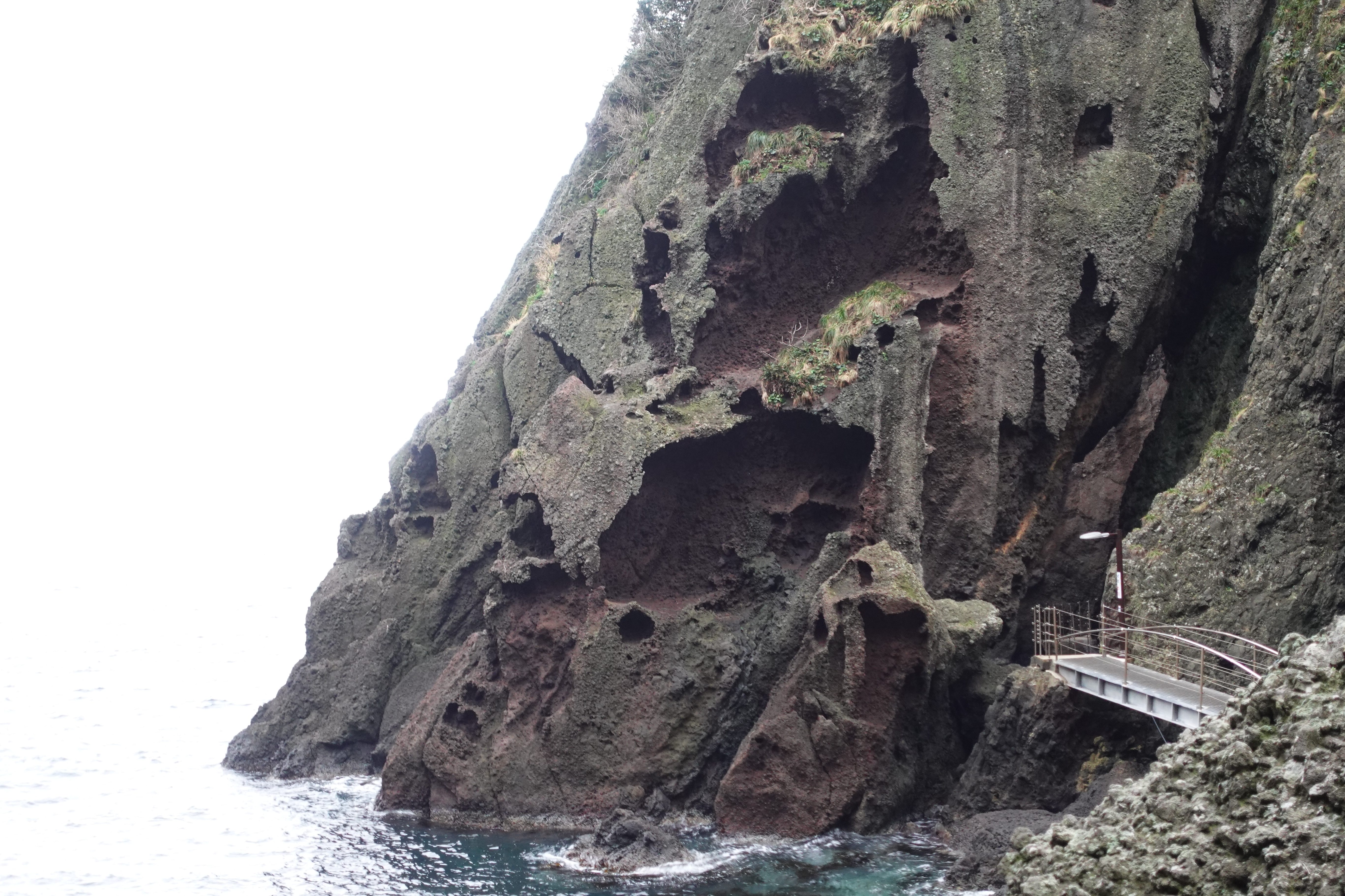 On the coastal cliffs of Ulleungdo Island, you should be careful of falling rocks due to the feeling of grains breaking and strong winds and waves.