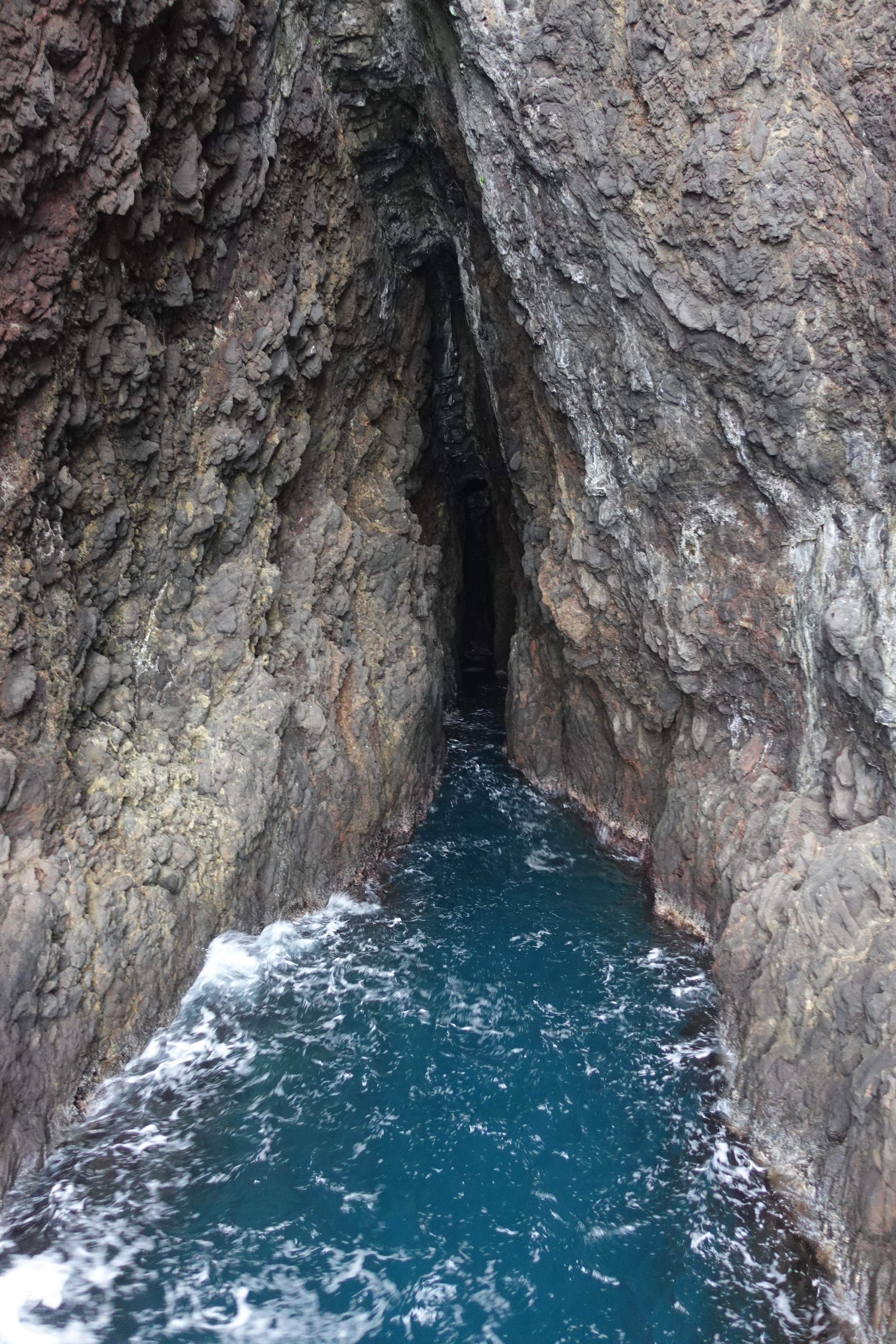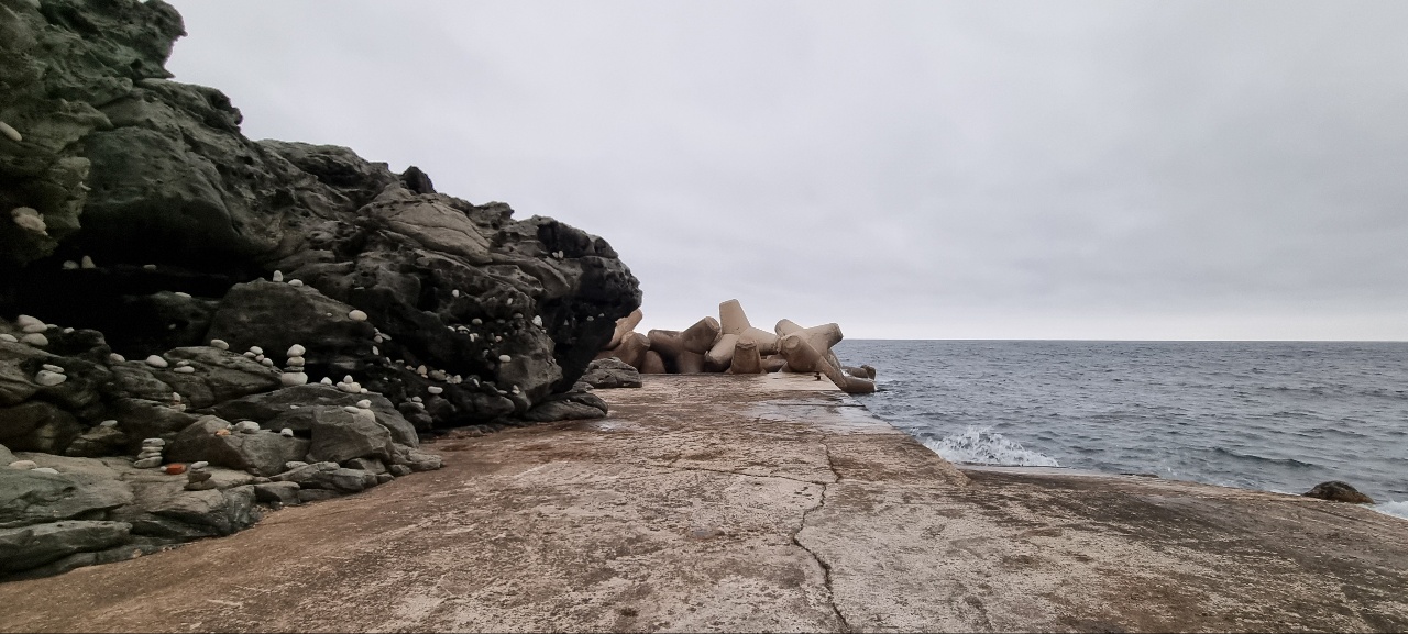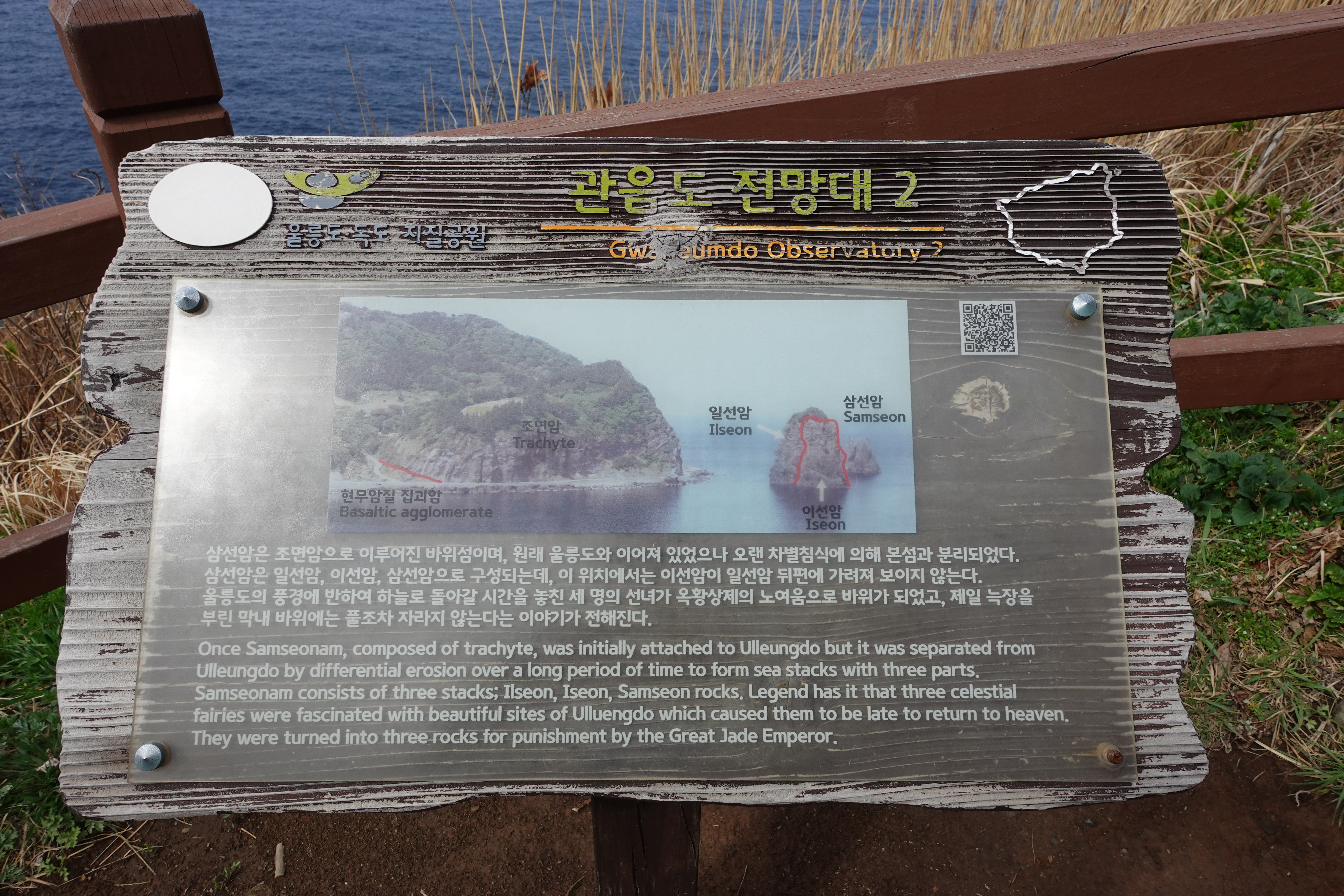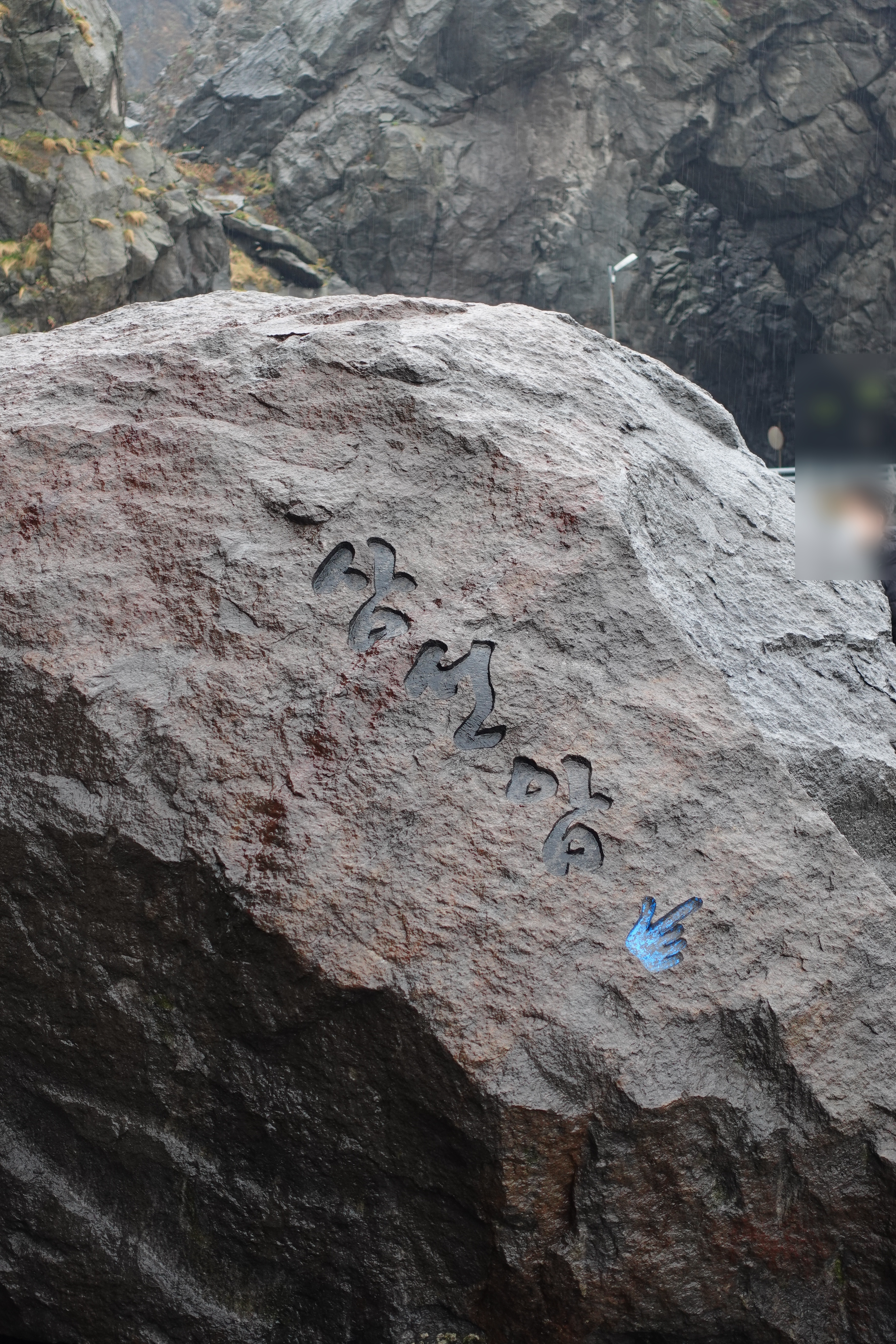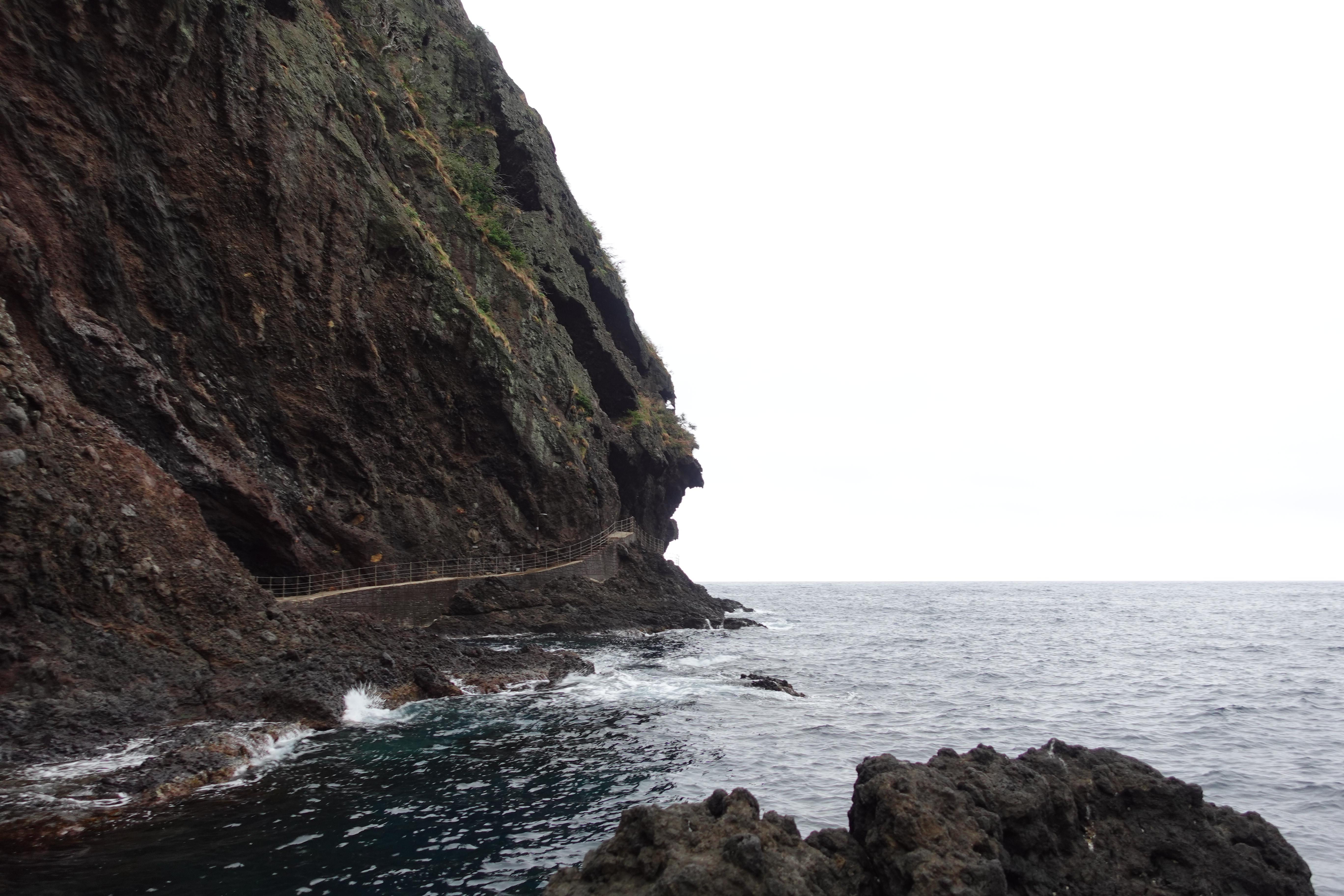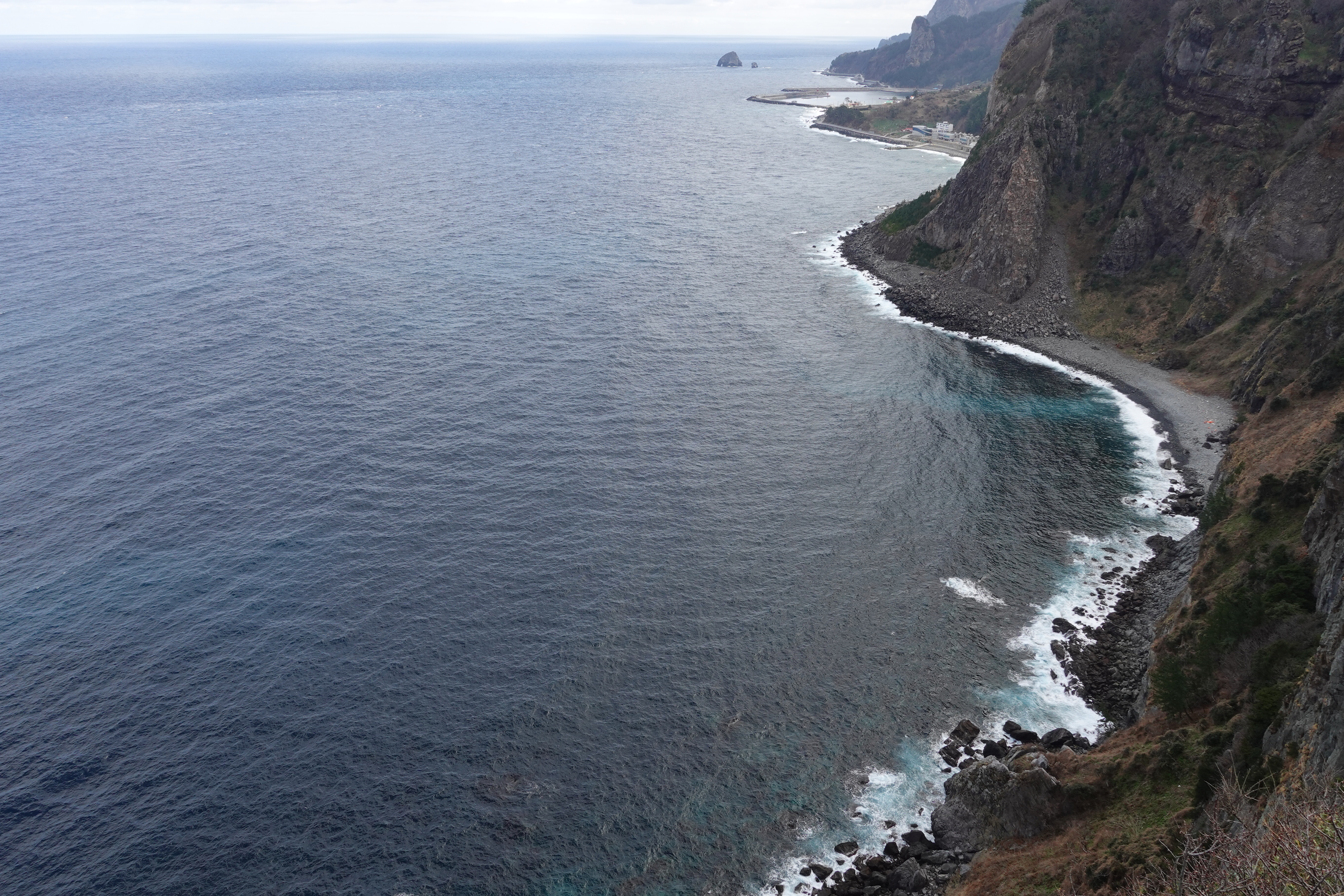 On the coastal cliffs of Ulleungdo Island, you should be careful of falling rocks due to the feeling of grains breaking and strong winds and waves.