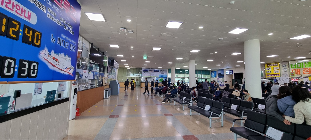 From Pohang Hupo Passenger Terminal to Sadong Port, it took a 159km (about 2 hours and 30 minutes) ferry to Ulleungdo Island. I came over to Dodong Port from Sadong Passenger Ship Terminal. Perhaps the schedule will proceed after lunch, but Dodong Port is located at Ulleung-gun Office and can be seen as downtown Ulleungdo Island.