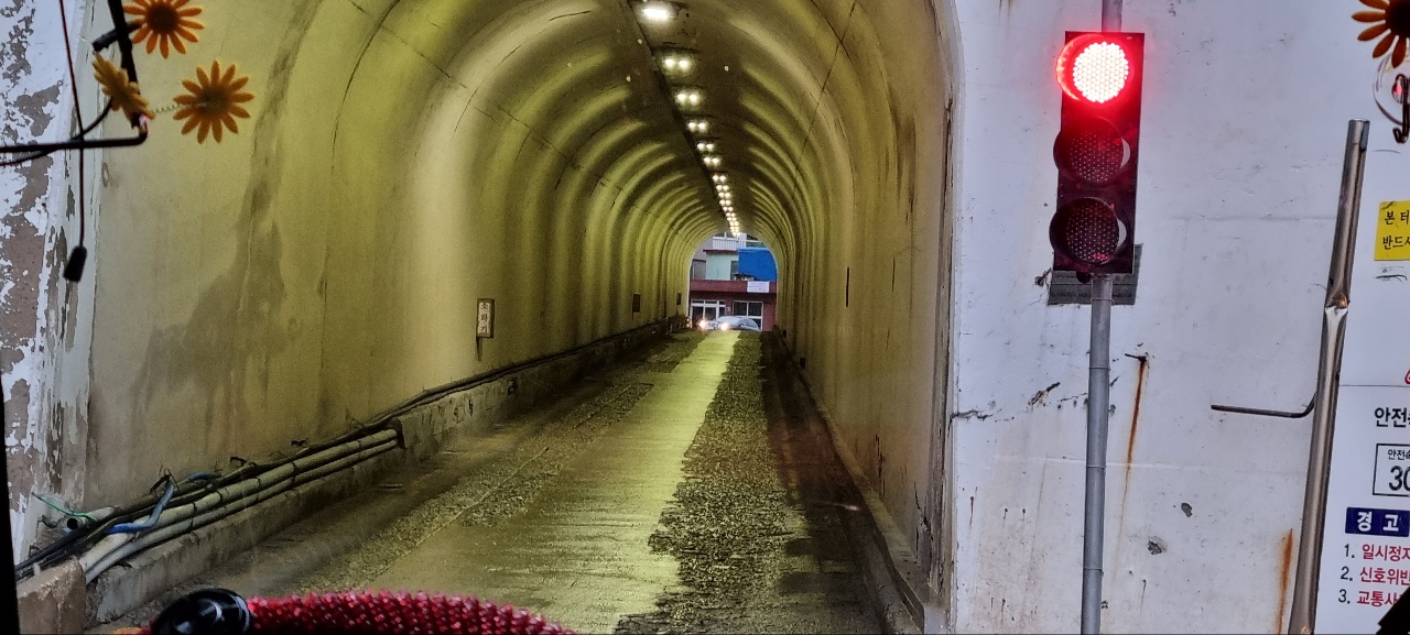 Ulleungdo Island has more tunnels than you think. Tunnel construction is still underway, and what is unusual is that there are few traffic lights, and it is the only one.