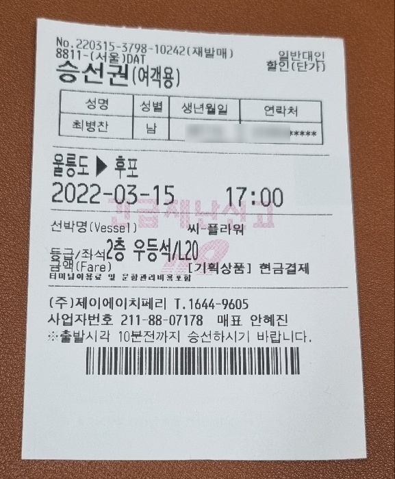 Motion sickness medicine is essential when visiting Ulleungdo Island. It can be seen that people who suffered from motion sickness often cannot go to Dokdo on the way to Ulleungdo Island. I also went on this trip because I wanted to see Dokdo rather than Ulleungdo Island.