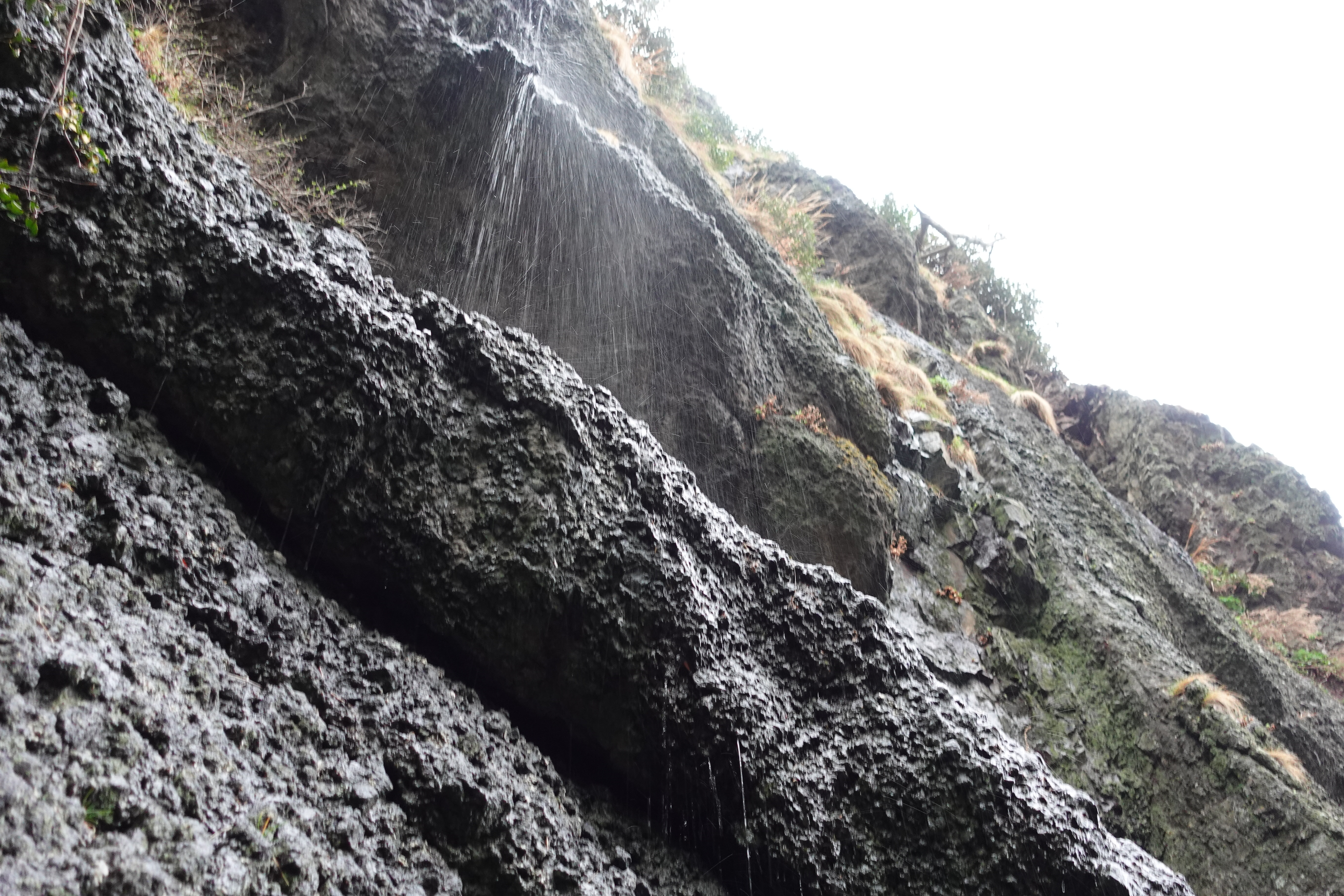 After several layers of tuff layers were piled up, the upper part was cut off over time, and rough lava flowed over it to become its current appearance. The interface between the two rocks with such a significant time difference is called an inconsistency.