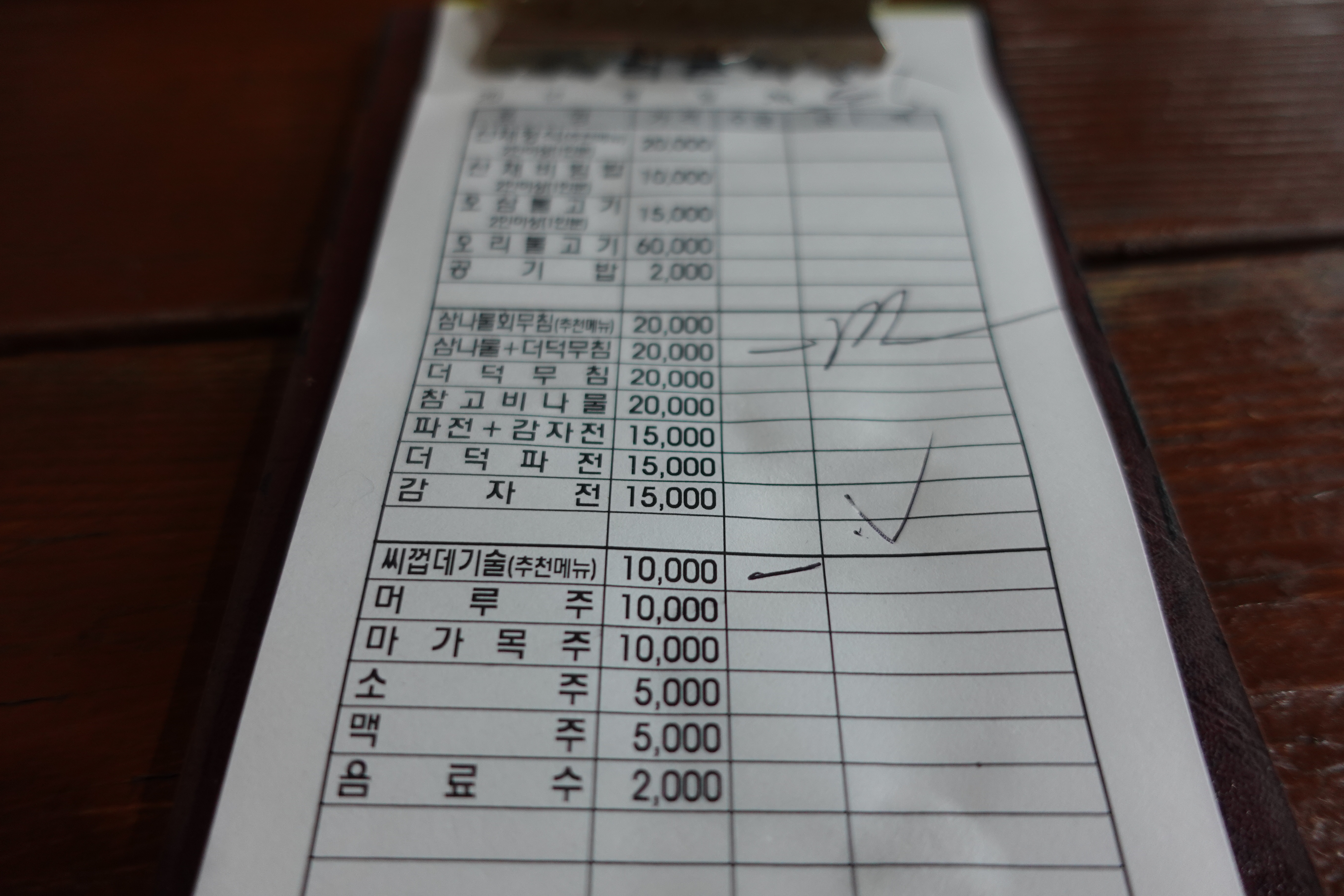Prices on Ulleungdo Island are a little expensive. In general, soybean paste stew and kimchi stew are 12,000 won.