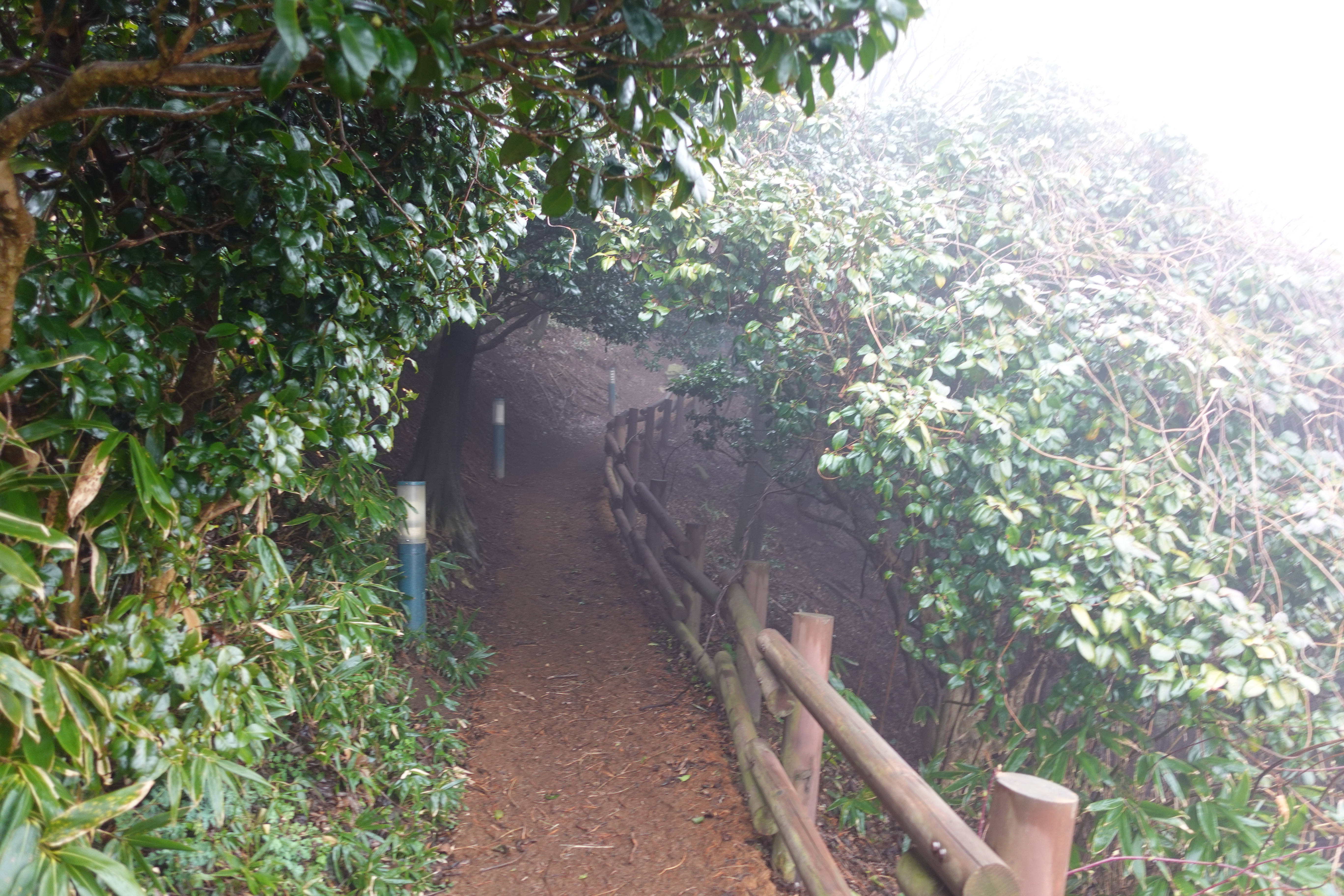 The road to Naesujeon Sunrise Observatory is a gentle uphill with numerous camellia trees and maga trees forming tunnels.