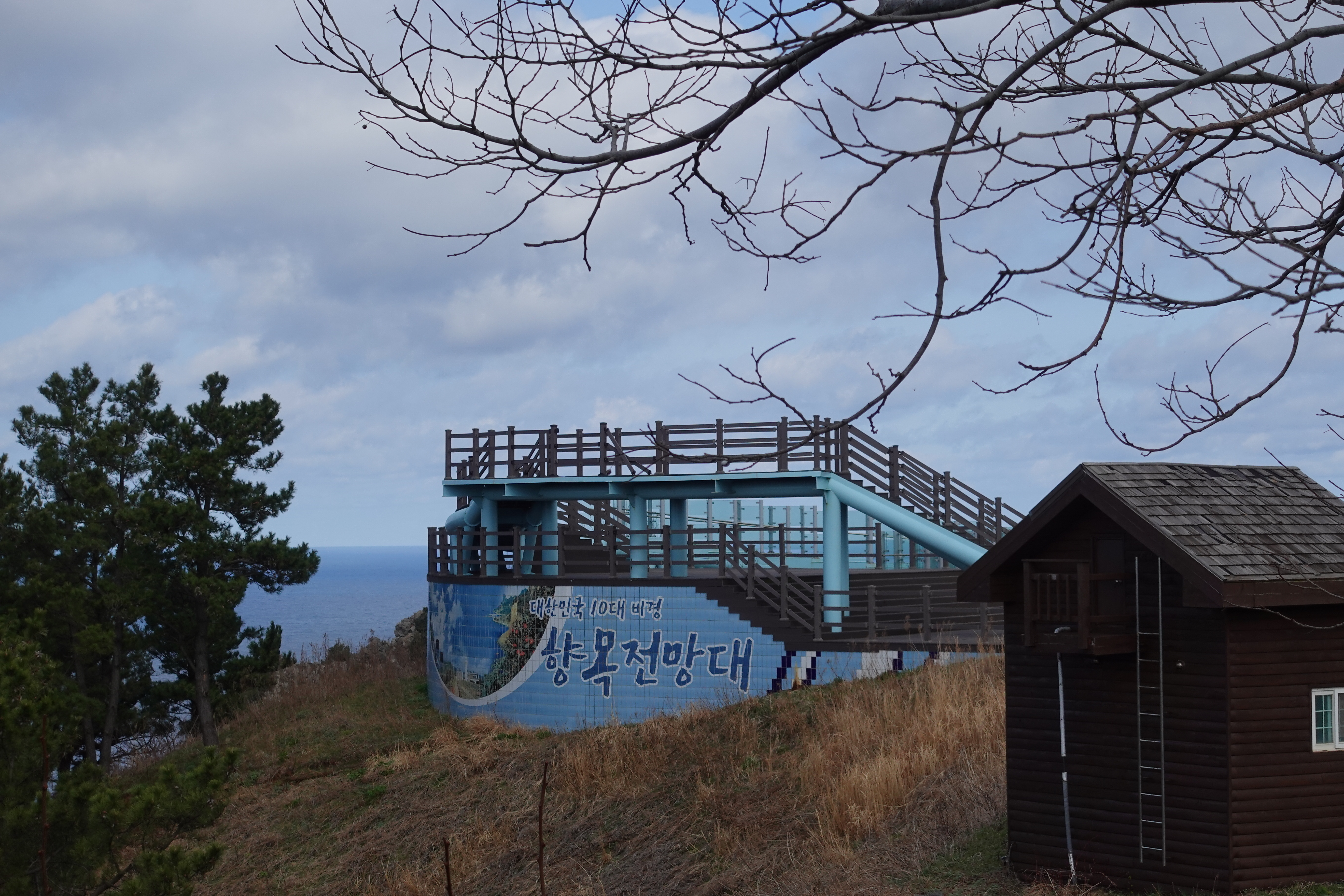 It is a place where the emerald sea and cliffs seen from Hyangmok Observatory, one of the top 10 scenic spots in Korea, go well together.